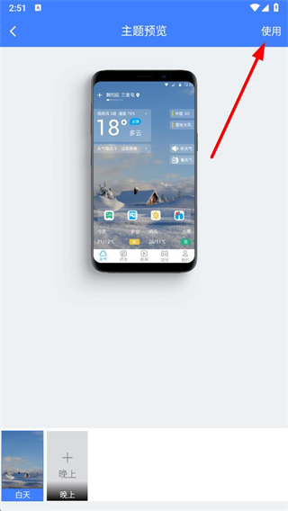 4、進入主題預(yù)覽頁面后,點擊右上角的使用按鈕,即可完成主題背景更換操作。