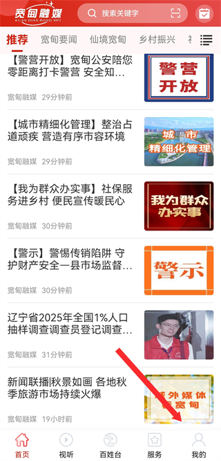 1、打開寬甸融媒app,點(diǎn)擊底部我的按鈕,進(jìn)入個(gè)人的頁面。