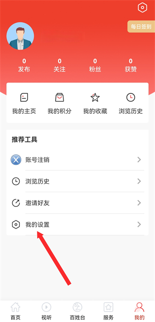 2、在個(gè)人的頁面,需要點(diǎn)擊我的設(shè)置的按鈕,進(jìn)入設(shè)置的頁面。