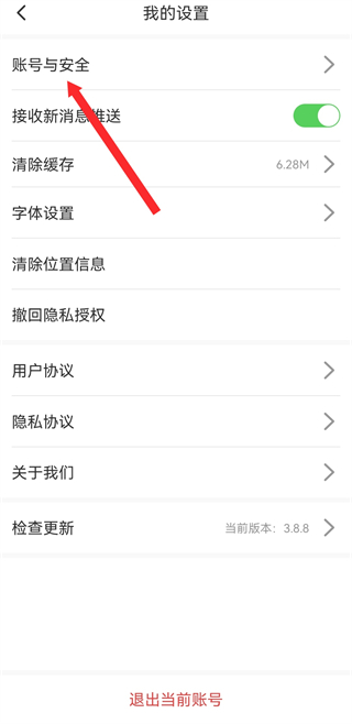 3、在設(shè)置的頁面,點(diǎn)擊賬號(hào)與安全,進(jìn)入賬號(hào)安全的界面。