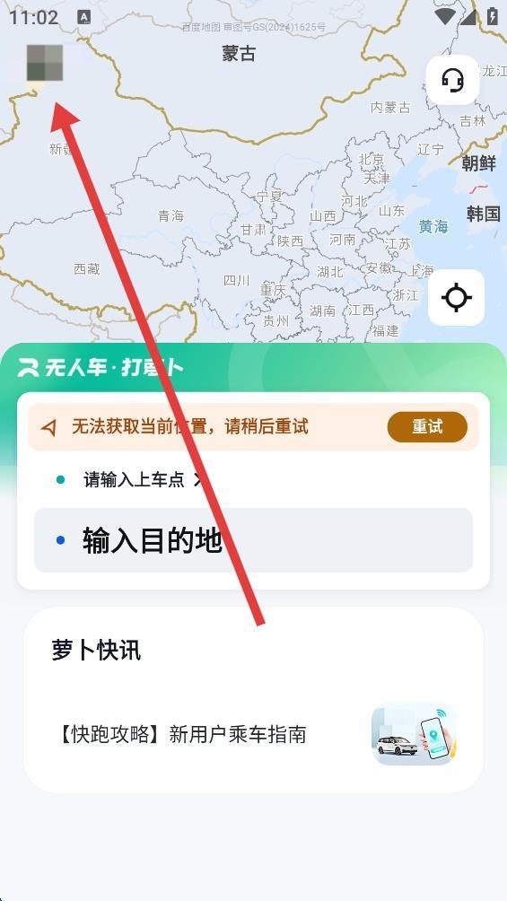 1、打開(kāi)蘿卜快跑APP,點(diǎn)擊主界面左上角的頭像圖標(biāo)。