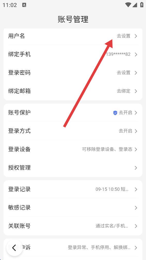 3、在賬號(hào)管理界面,點(diǎn)擊用戶名右側(cè)的去設(shè)置。