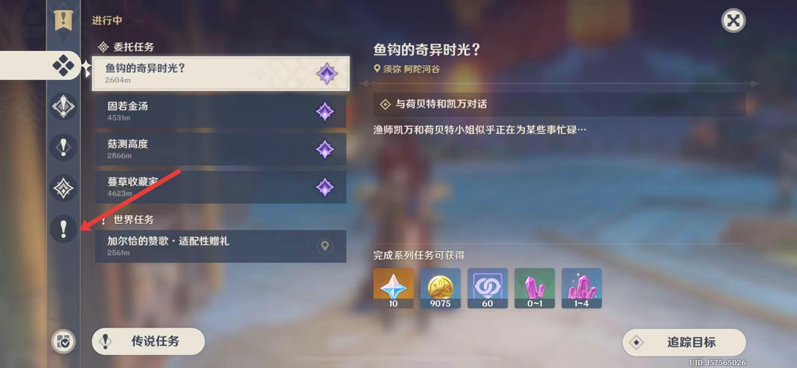2、在任務(wù)列表界面,點(diǎn)擊左側(cè)帶有感嘆號(hào)標(biāo)識(shí)的世界任務(wù)分類(lèi),找到想要追蹤的世界任務(wù)。