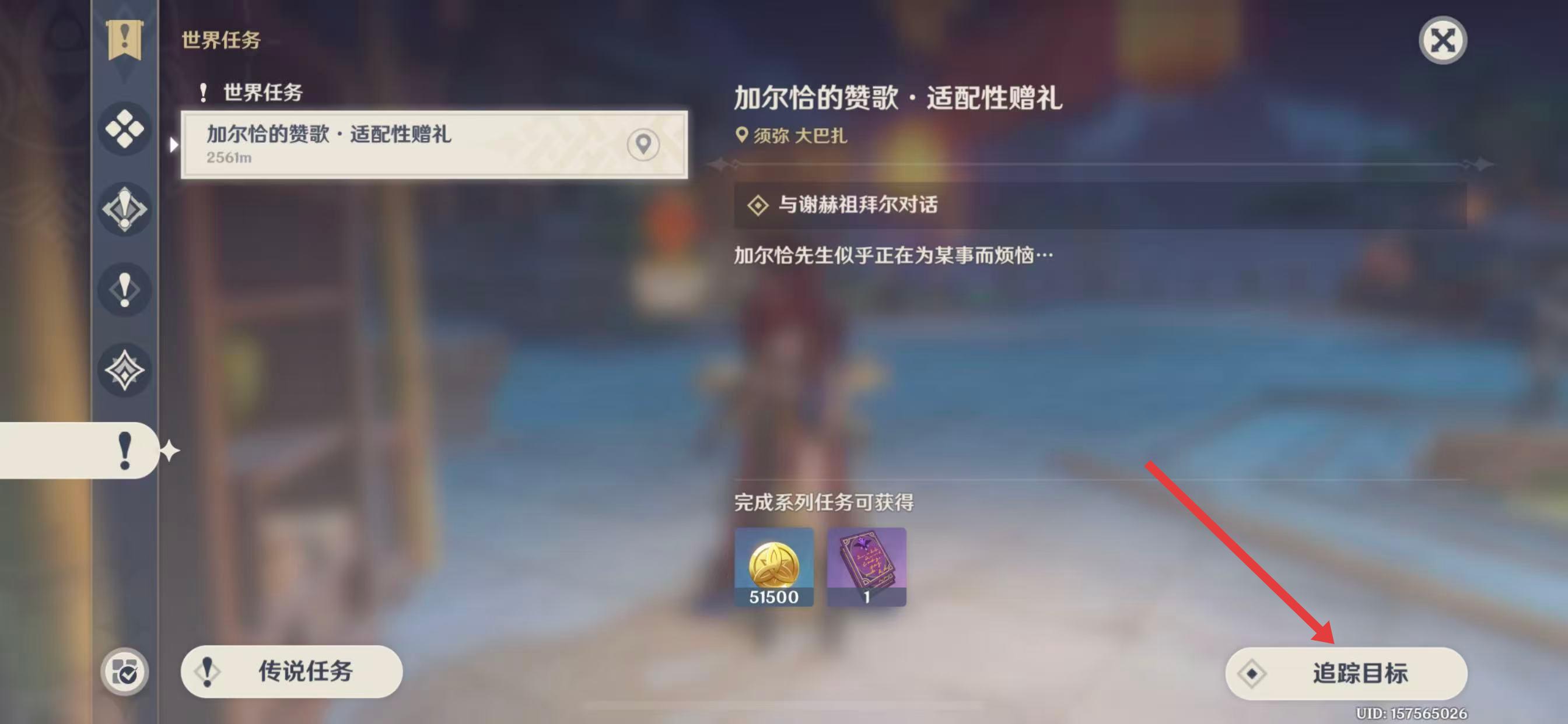 3、選中想要追蹤的世界任務(wù),此時(shí)任務(wù)詳情會(huì)顯示在右側(cè),點(diǎn)擊右下方的追蹤目標(biāo)按鈕 ,即可成功追蹤該世界任務(wù)。