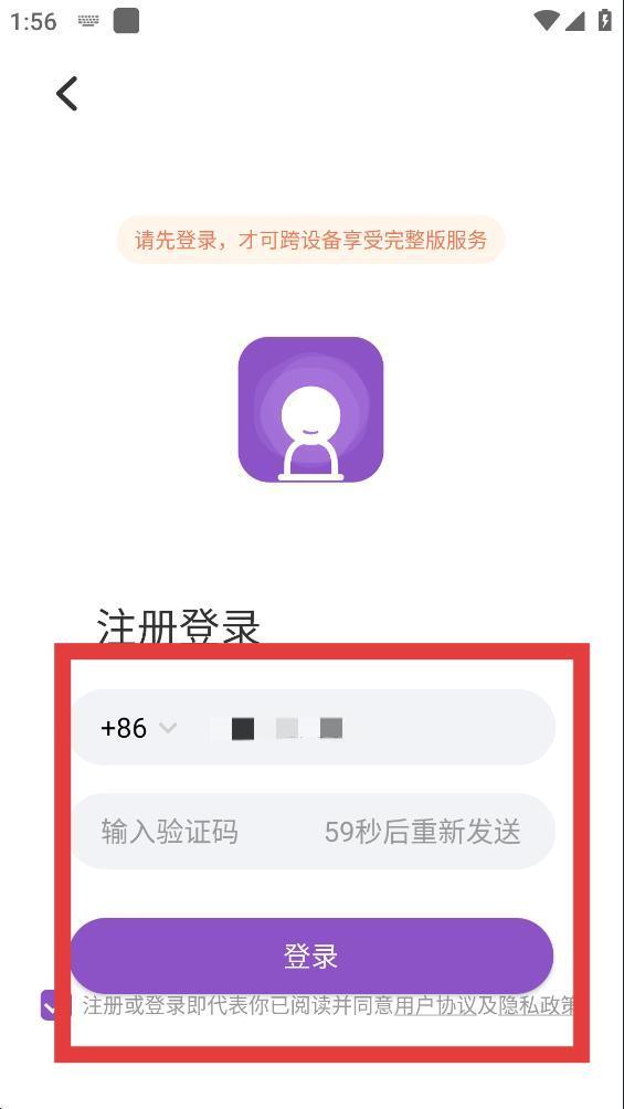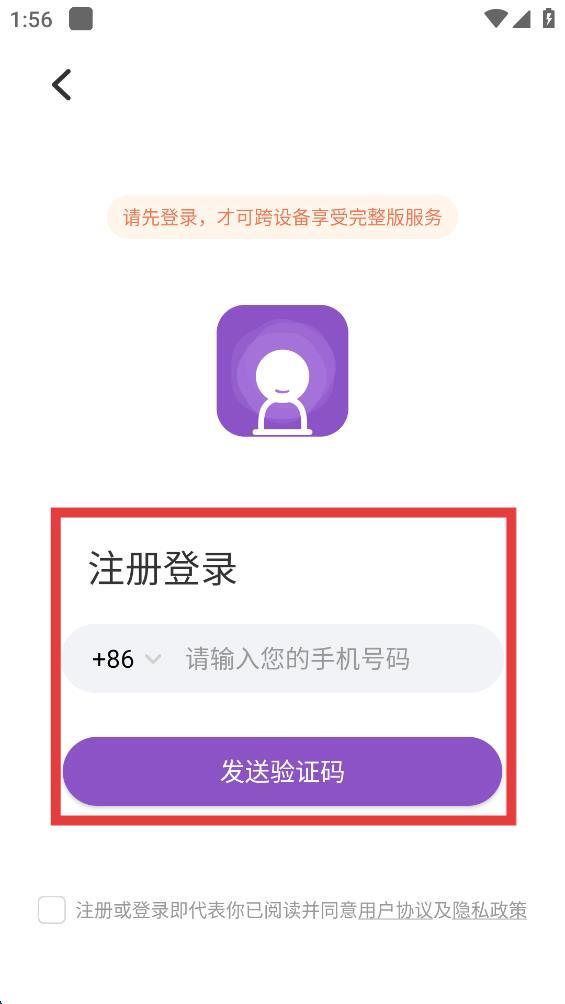 3、在注冊(cè)登錄頁面輸入你的手機(jī)號(hào)碼,點(diǎn)擊發(fā)送驗(yàn)證碼。
