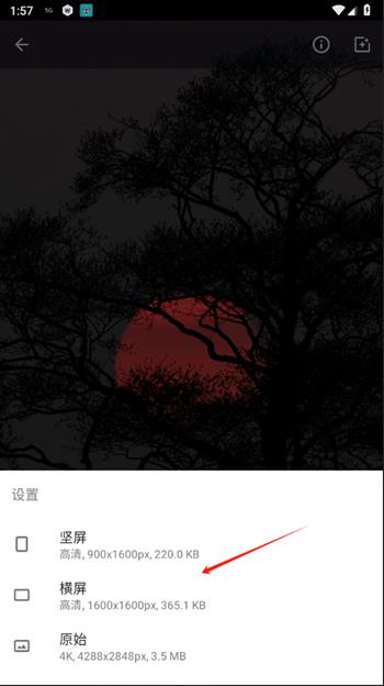 3、在設(shè)置選項中,選擇橫屏等壁紙尺寸,進入安裝程序頁面。