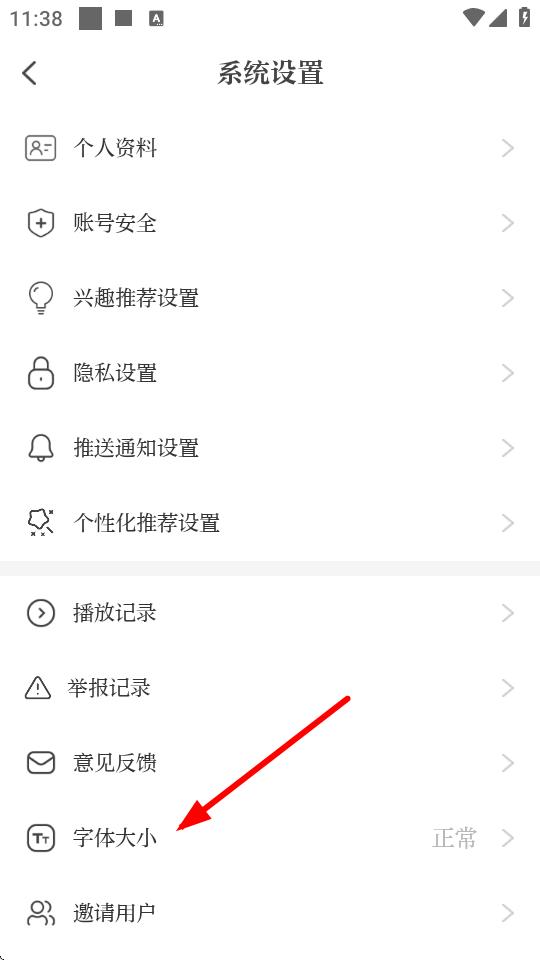 3、在系統(tǒng)設置界面中,找到并點擊字體大小選項。