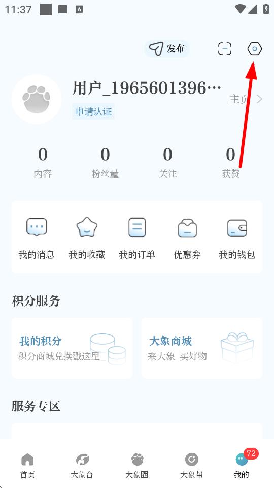 2、在個人頁面右上角,點擊設置圖標進入系統(tǒng)設置界面。