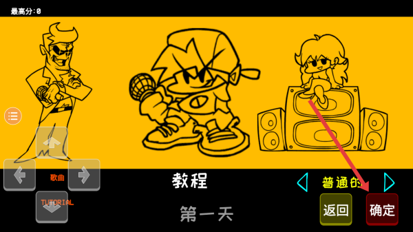 3、選定教程模式與普通難度后,按著指示點(diǎn)擊右下角確定按鈕,正式開(kāi)始音樂(lè)節(jié)奏挑戰(zhàn)。