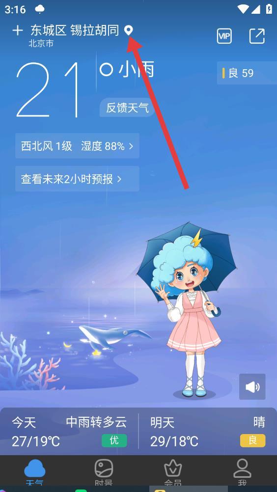 1、打開墨跡天氣,點擊上方顯示的當前定位位置。