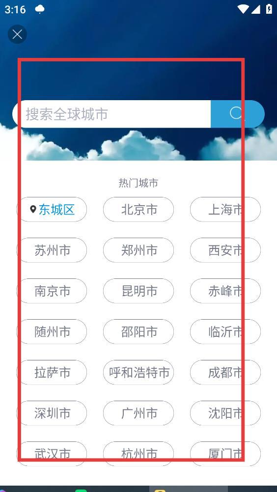 3、在搜索界面,輸入或選擇目標城市名稱。