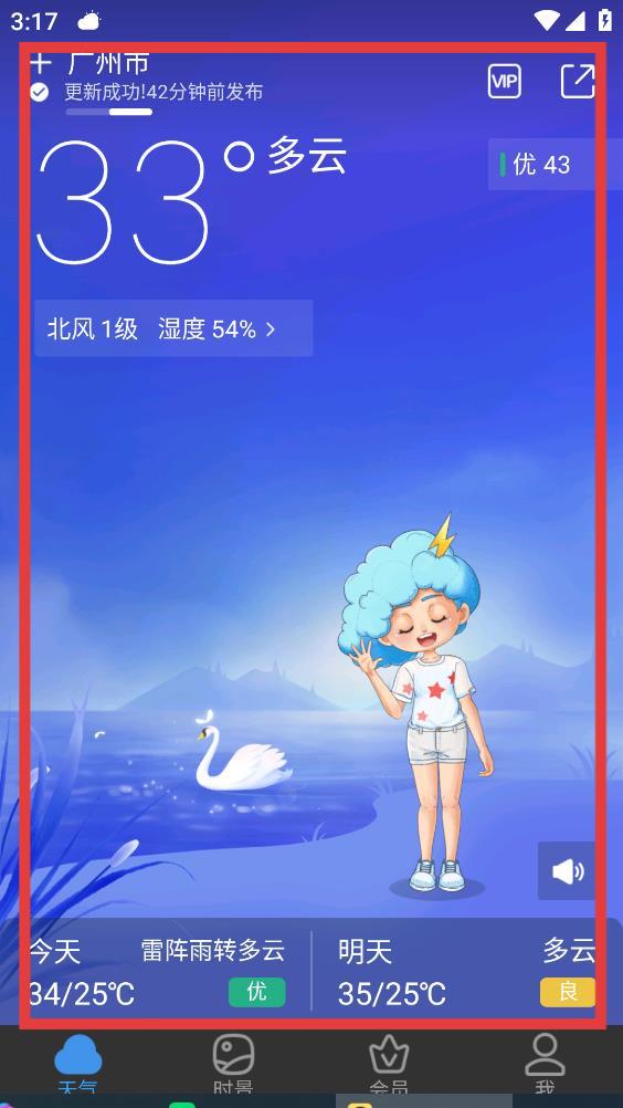 天氣背景:真實城市美景、自然風光、女神萌寵多版主題隨心切換并支持私人定制背景;