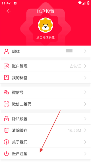 3、進(jìn)入賬戶設(shè)置頁面后,下滑找到賬戶注銷選項(xiàng)并點(diǎn)擊。