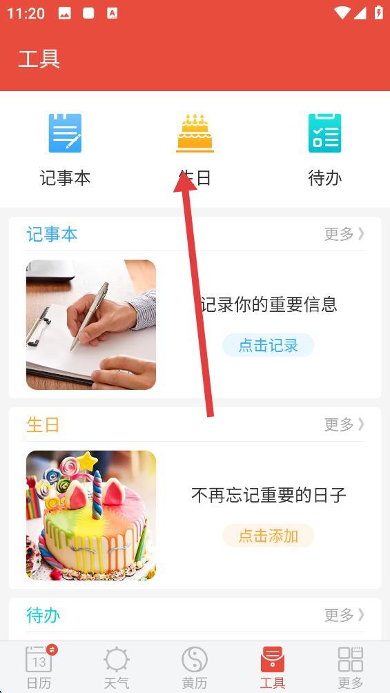 2、在工具頁(yè)面中,找到并點(diǎn)擊生日選項(xiàng)。
