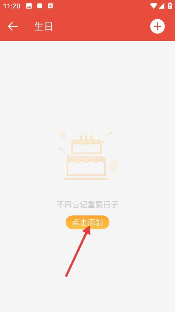 3、進(jìn)入生日頁(yè)面后,點(diǎn)擊點(diǎn)擊添加按鈕,進(jìn)入生日編輯頁(yè)面。