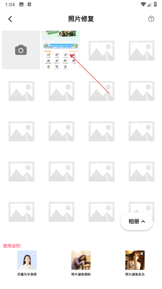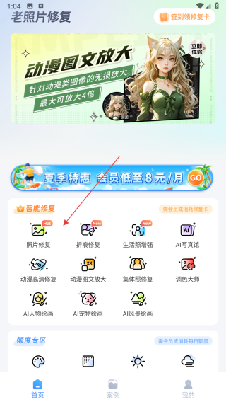 1、打開老照片修復(fù)應(yīng)用,在智能修復(fù)板塊中點擊照片修復(fù)選項,進(jìn)入照片修復(fù)功能界面。