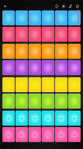 2、進(jìn)入電鼓墊的頁(yè)面內(nèi),點(diǎn)擊右上角音調(diào)調(diào)整的功能圖標(biāo)。