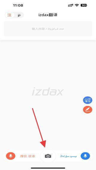 1、打開izdax漢維翻譯APP,在首頁內(nèi)點擊相機的功能按鈕。