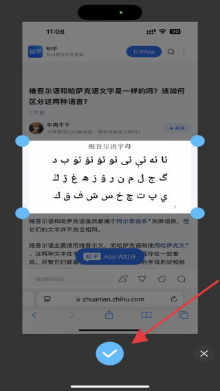 4、點擊完成后,需要再次將內(nèi)容進行截取,能夠更精準的翻譯,再點擊打鉤的圖標即可。