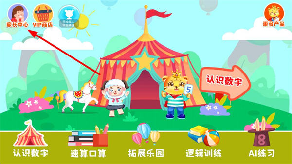 1、打開寶寶學(xué)數(shù)學(xué)app,點(diǎn)擊左上角的家長中心圖標(biāo),進(jìn)入相關(guān)頁面。