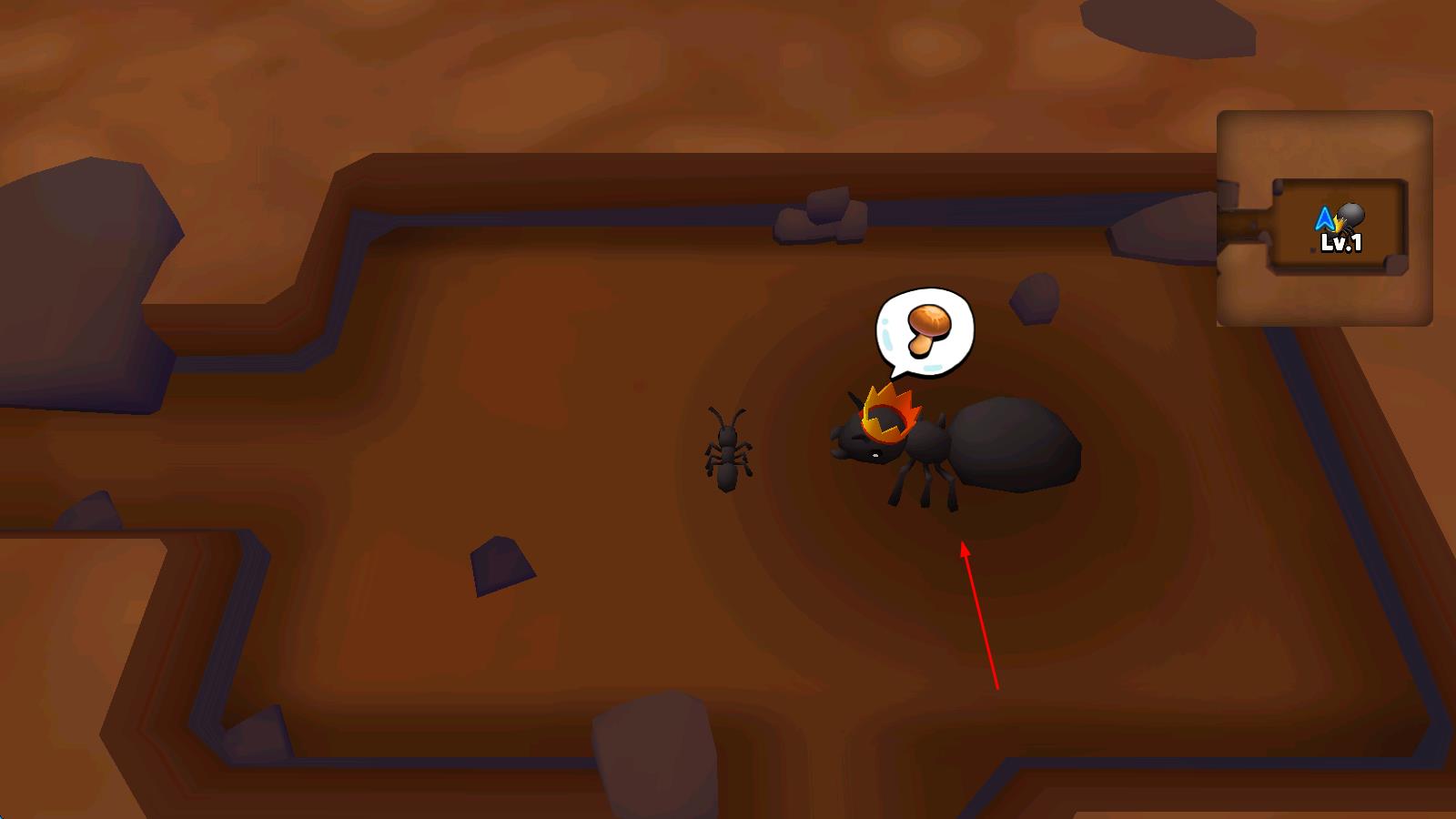 1、進(jìn)入螞蟻進(jìn)化3D后,先熟悉螞蟻的基礎(chǔ)操作,操控初始螞蟻在周邊區(qū)域探索,尋找并收集蟲子、果實等基礎(chǔ)食物,為蟻群初期生存儲備資源。
