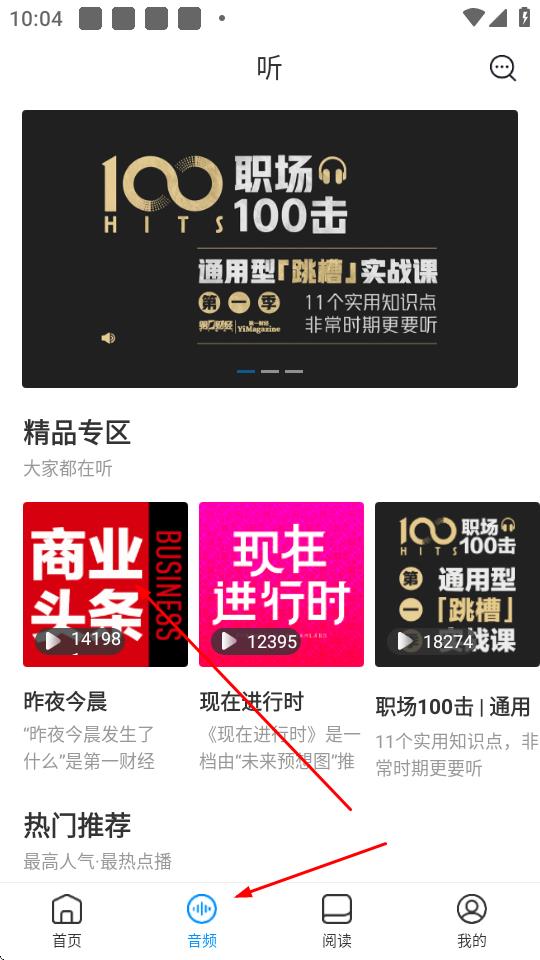 1、打開第一財(cái)經(jīng)雜志相關(guān)App,進(jìn)入音頻選項(xiàng),找到想要下載的音頻,點(diǎn)擊進(jìn)入。