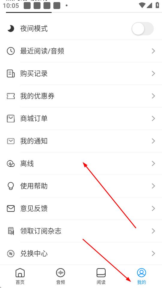4、下載完成后,進(jìn)入我的選項(xiàng),點(diǎn)擊離線。