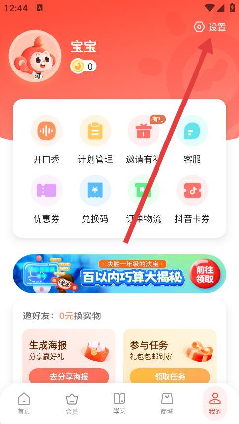 1、打開(kāi)學(xué)而思小猴語(yǔ)文app,點(diǎn)擊底部導(dǎo)航欄我的選項(xiàng)。
