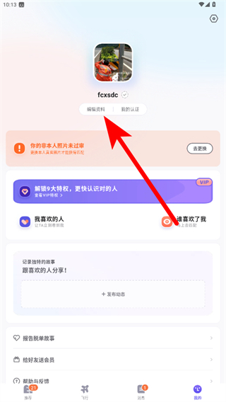 2、在個人頁面中,點擊昵稱上方的編輯資料按鈕。