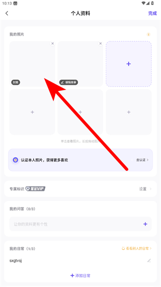 3、進入個人資料頁面后,點擊我的照片區(qū)域中的頭像位置。