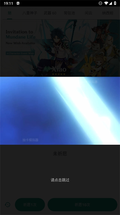 2、然后就會出現(xiàn)模擬真實的祈愿的動畫畫面,點擊就可以自動跳過查看抽到的東西;