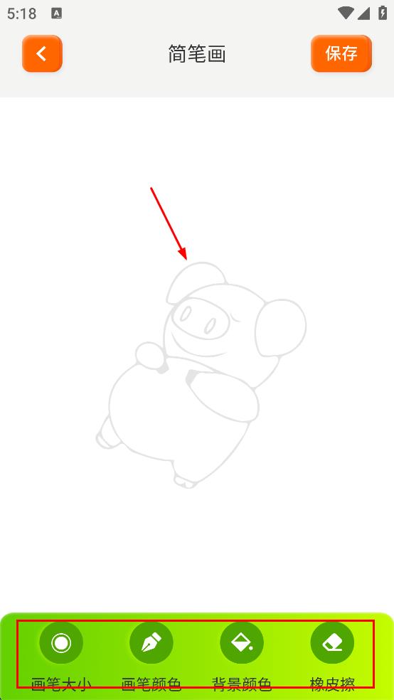 4、在簡筆畫繪制頁面,可調(diào)整畫筆大小、畫筆顏色、背景顏色等繪制參數(shù),然后沿著圖案輪廓進行繪制,繪制完成后,點擊保存,留存繪制的簡筆畫。