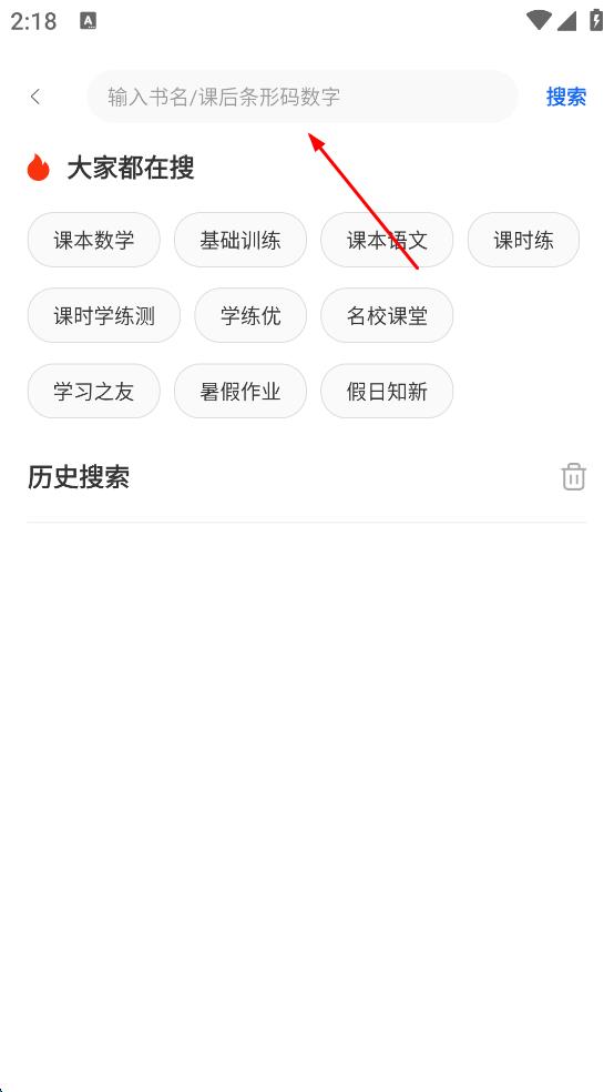 4、進入搜索頁面后,在頂部的輸入框中輸入書名或者課后條形碼數(shù)字,然后點擊“搜索”按鈕,查找對應的作業(yè)答案。