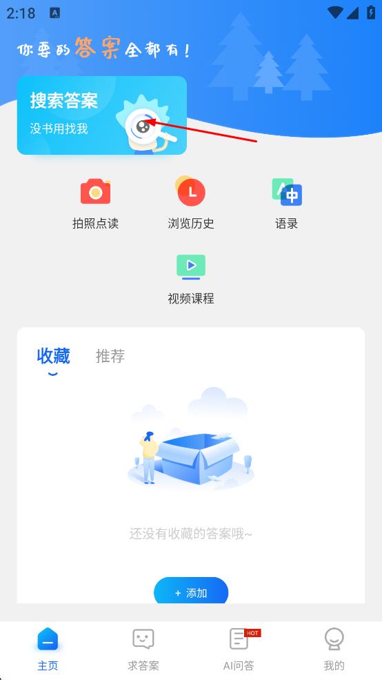 3、選擇好年級后,進入APP主界面,點擊“搜索答案”選項。