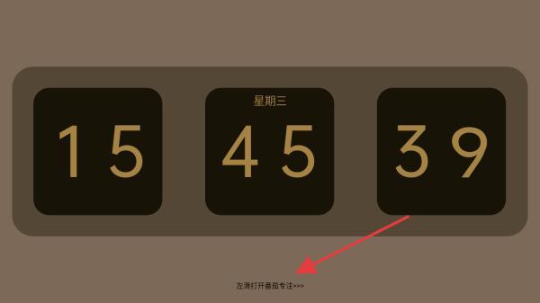 1、打開色采時(shí)鐘APP,在首頁內(nèi)點(diǎn)擊左滑打開番茄專注。