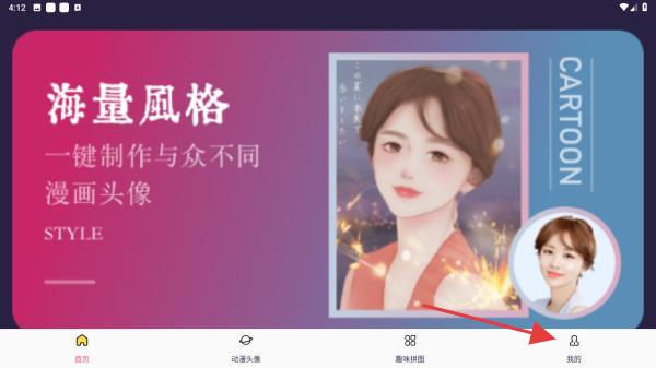 1、啟動(dòng)漫畫相機(jī)APP后,點(diǎn)擊底部導(dǎo)航欄最右側(cè)的我的圖標(biāo)。
