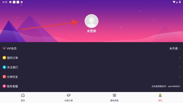 2、在個(gè)人中心頁(yè)面,點(diǎn)擊頂部未登錄頭像的區(qū)域,進(jìn)入登錄界面。
