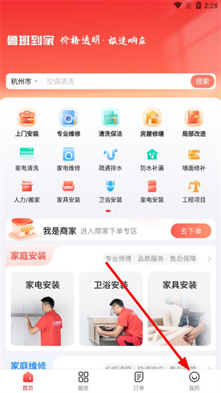 1、打開魯班到家app,點擊底部導(dǎo)航欄中的我的選項。