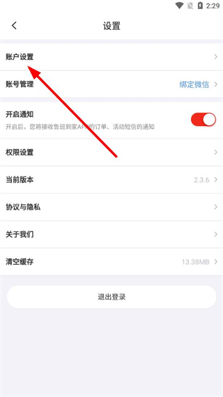 3、在設(shè)置界面里,點擊賬戶設(shè)置選項,進(jìn)入賬號設(shè)置操作。