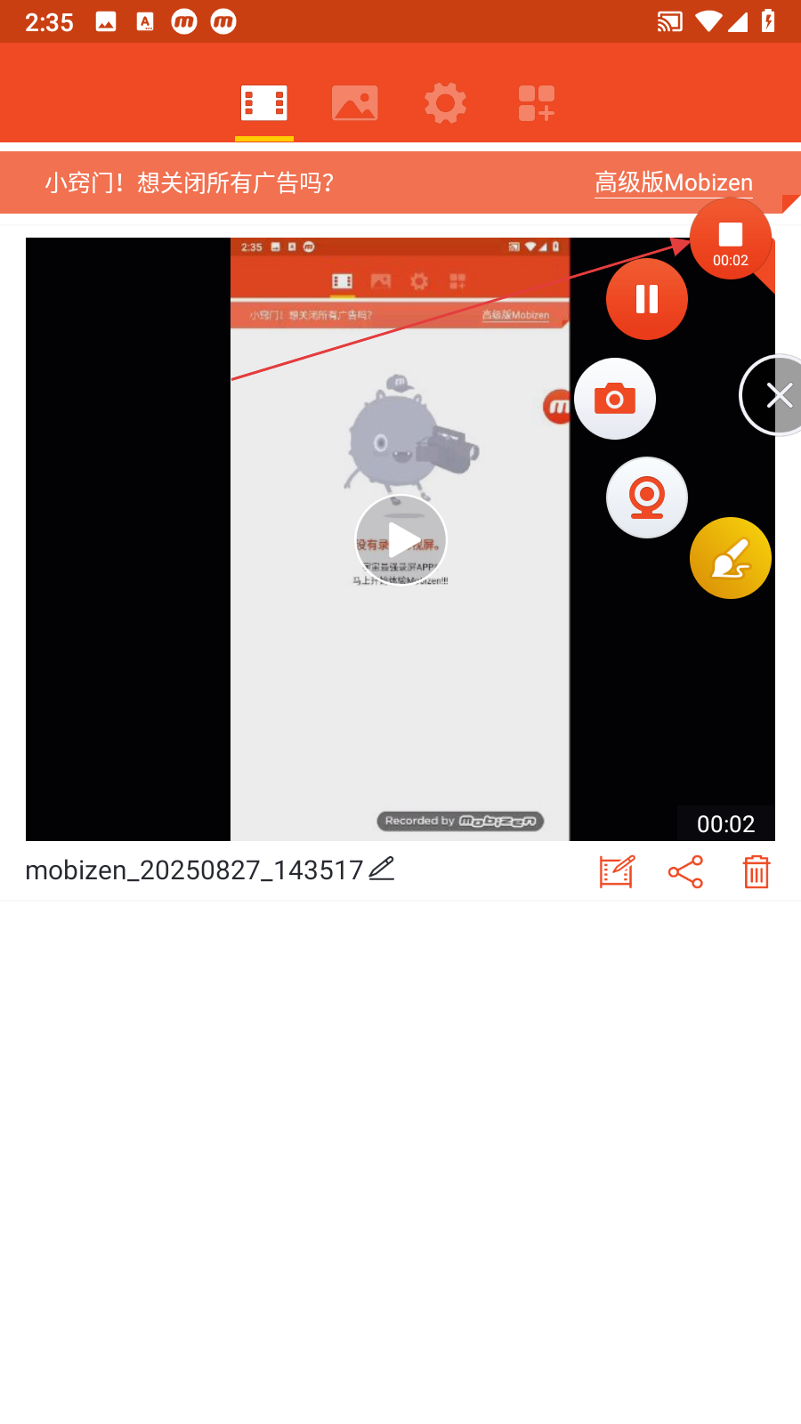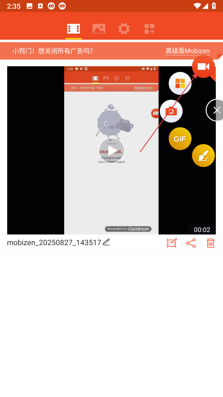1、打開Mobizen應用進入主界面,在界面右側找到紅色攝像機形狀的錄屏按鈕,點擊該按鈕即可開始錄制手機屏幕內容。