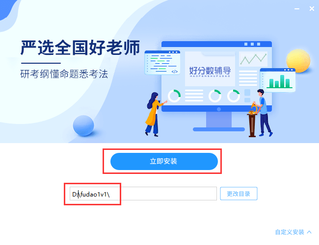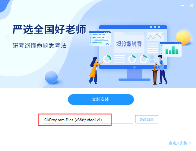 1、在本頁面下載好分?jǐn)?shù)輔導(dǎo)1v1,并解壓文件夾,雙擊文件“fudao1v1_setup.exe”開始安裝,界面如下圖所示:
