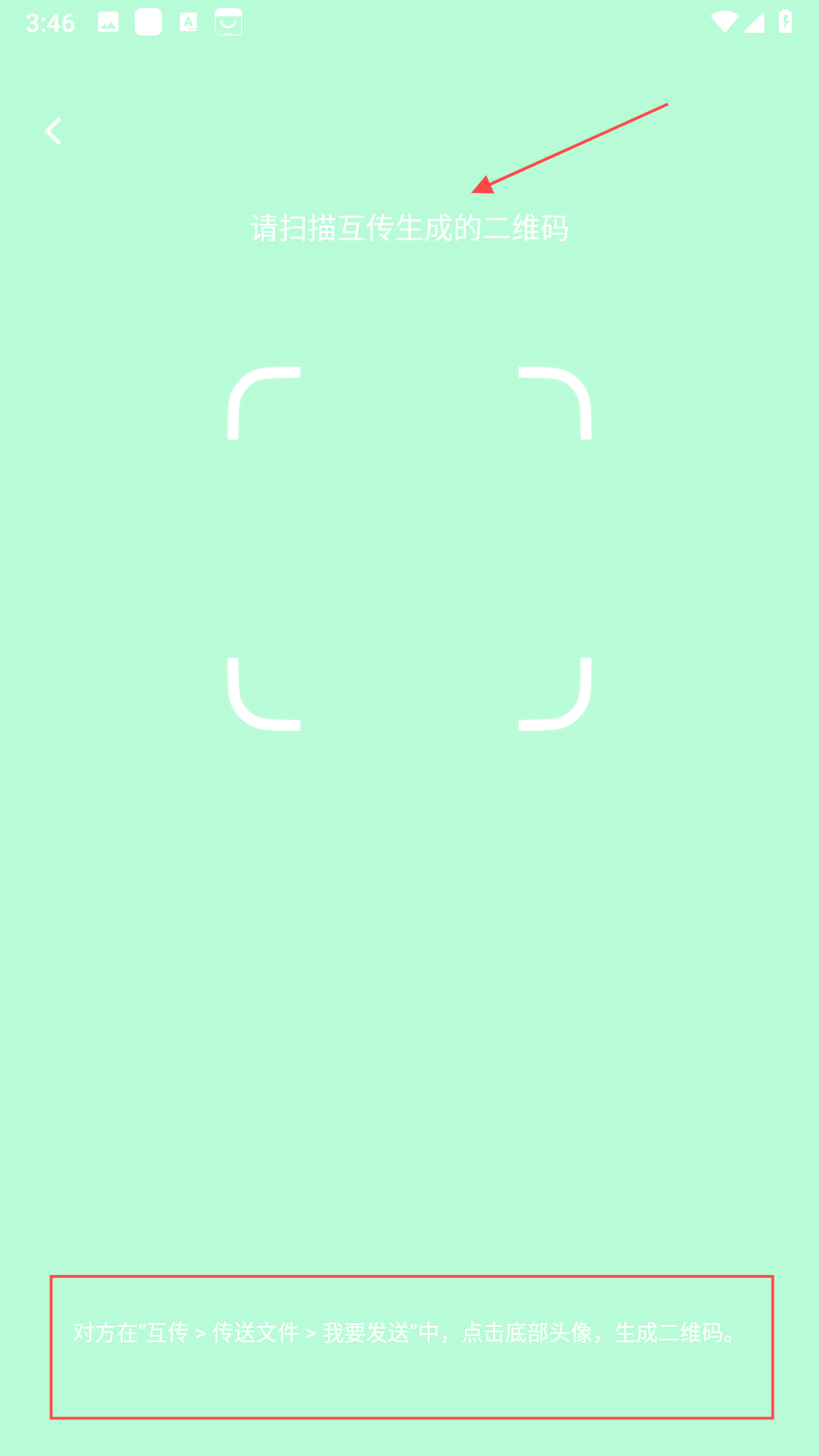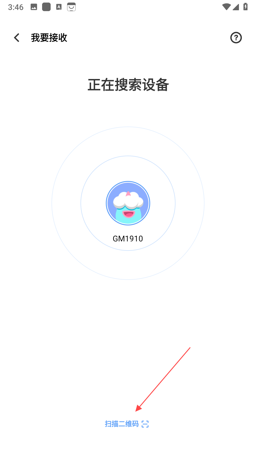 2、若搜索到發(fā)送方設(shè)備,確認(rèn)是目標(biāo)設(shè)備后等待連接,若未搜索到,點(diǎn)擊頁(yè)面中的掃描二維碼,準(zhǔn)備掃描發(fā)送方生成的二維碼。