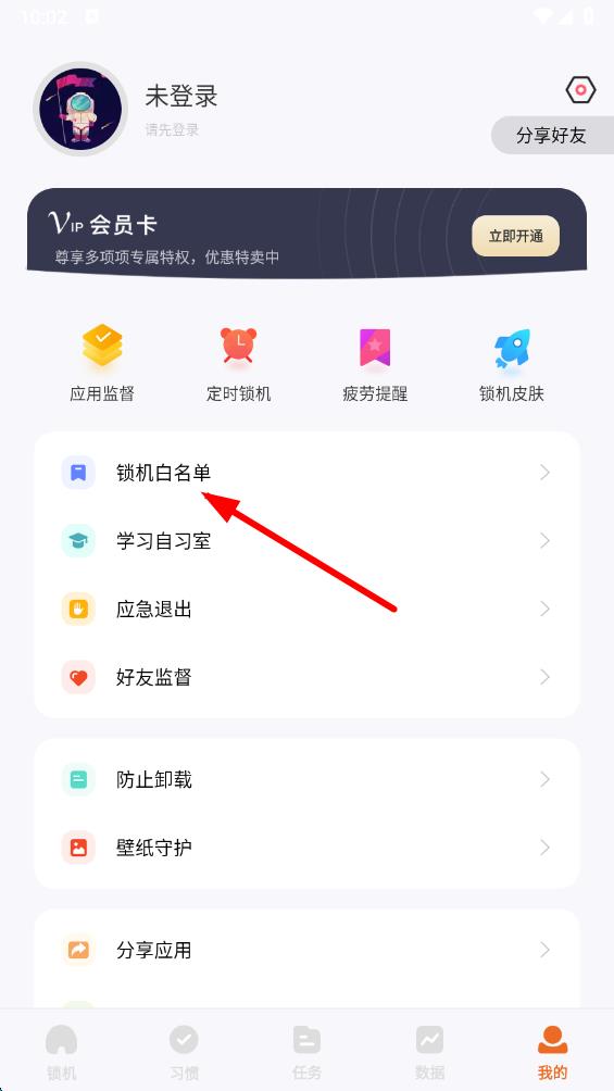 2、在個(gè)人設(shè)置頁(yè)面里,找到鎖機(jī)白名單選項(xiàng),點(diǎn)擊進(jìn)入該功能界面。