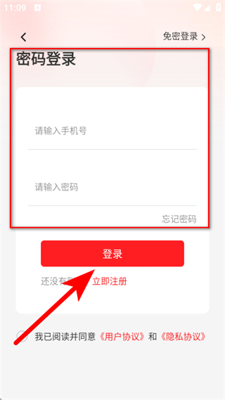 4、在密碼登錄的頁面輸入信息后,點擊登錄按鈕,完成登錄操作。