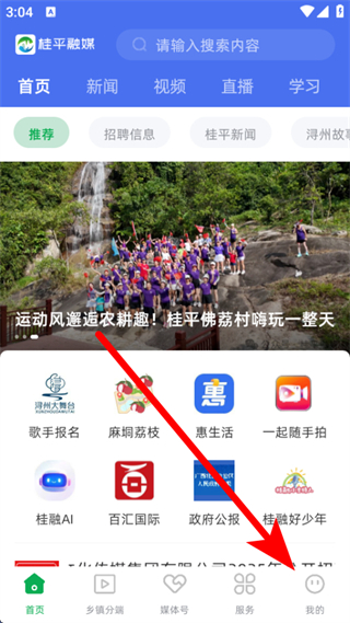 1、在桂平融媒的首頁(yè),需要點(diǎn)擊底部我的按鈕,進(jìn)入個(gè)人的頁(yè)面。