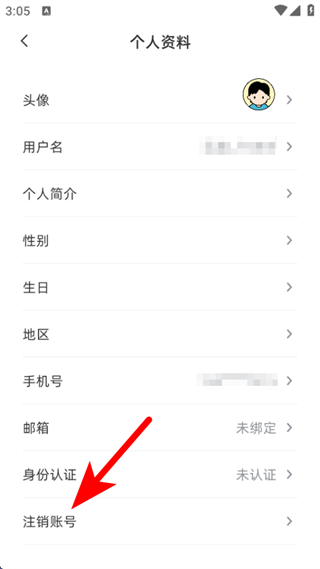 3、在個(gè)人資料的頁(yè)面,點(diǎn)擊注銷賬號(hào)按鈕,進(jìn)入注銷須知的頁(yè)面。