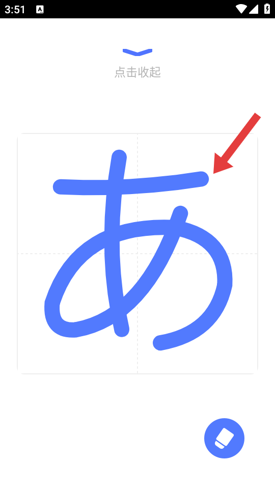 4、在界面按照指引跟隨筆順軌跡練習(xí)假名書寫,鞏固對假名的記憶。
