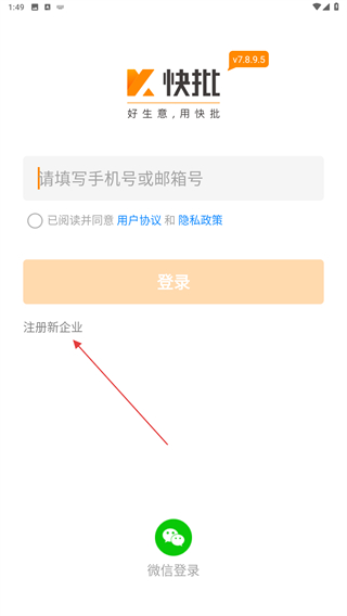 2、進(jìn)入到登錄的頁(yè)面內(nèi),點(diǎn)擊注冊(cè)新企業(yè)的按鈕。