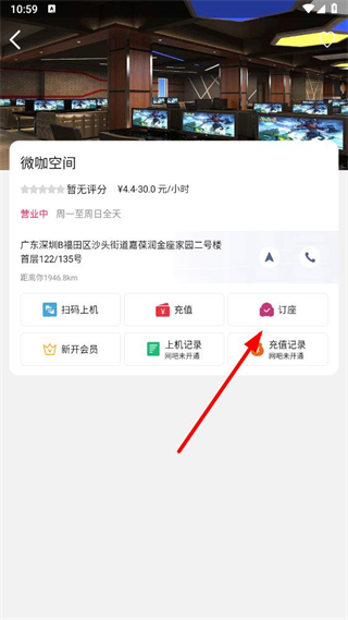 4、在網(wǎng)吧詳情頁面點擊訂座按鈕,即可預(yù)訂該網(wǎng)吧座位。