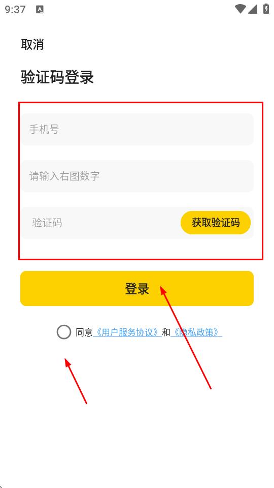 4、在驗證碼登錄頁面,輸入手機(jī)號、圖片數(shù)字驗證碼、短信驗證碼,勾選同意用戶服務(wù)協(xié)議和隱私政策,點擊登錄即可。
